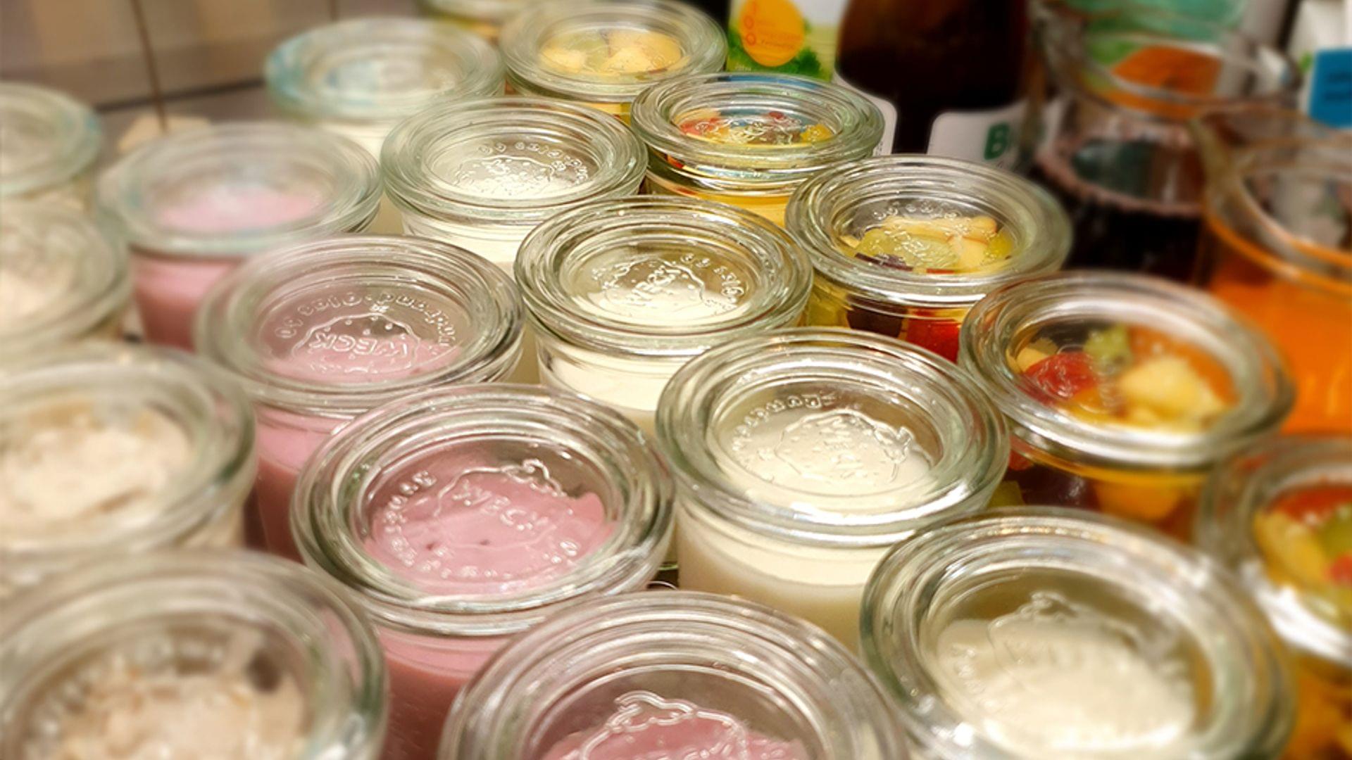 - hausgemachter Obstsalat und Birchermüsli, Joghurt